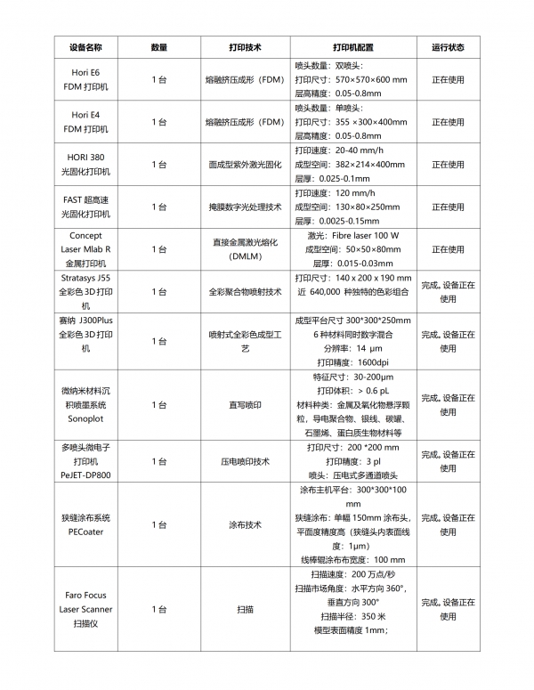 满足本科生实践教学任务,培养学生了解和掌握现有3D打印技术的种类、技术特征和基本操作过程,培养学生的工程能力和创新思维能力; 服务“科教融合”,服务提供工程训练教学与学院/研究所科研融合平台,;配合开展产教结合,推进与3D打印机企业交流,